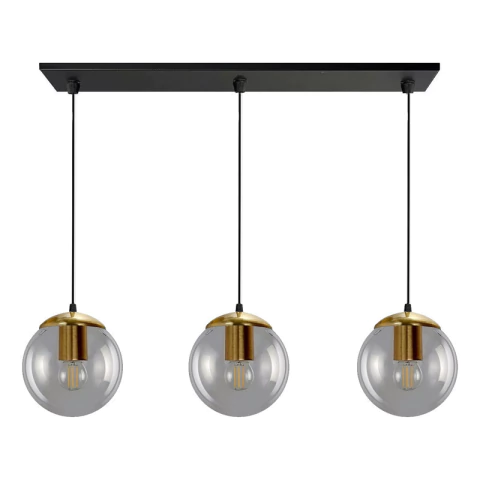 Colgante 3 luces globo 15cm transparente con dorado